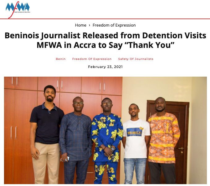 In June 2020, MFWA collaborated with other press freedom organizations to secure the release of Ignace Sossou, a Beninese reporter who was arrested for allegedly quoting a government official out of context. Their advocacy helped shave off 12 months from Sossou’s 18-month sentence.